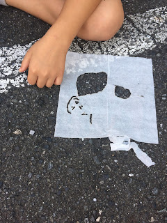そしてその線香が消える前に、彼女の作品の行為でもある穴を開けるワークをしました。